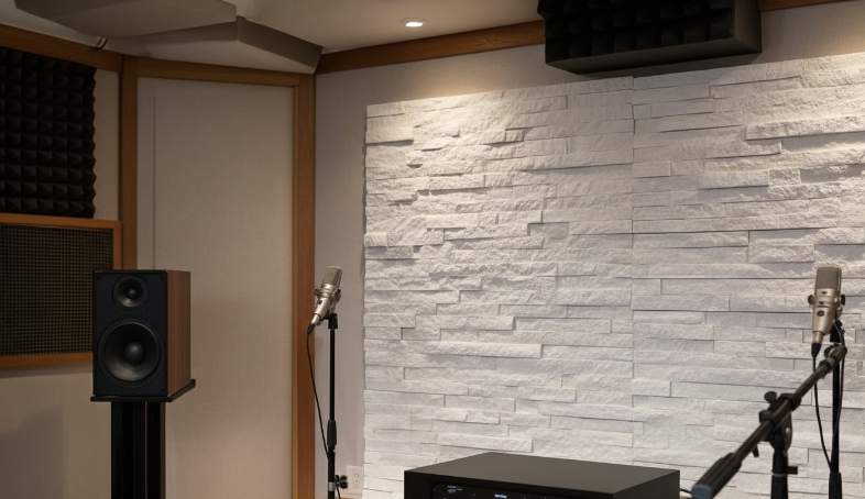 - Surface strategy: limit stone to 20–40% of side/rear wall area and treat first-reflection points with absorptive panels or acoustical fabric.