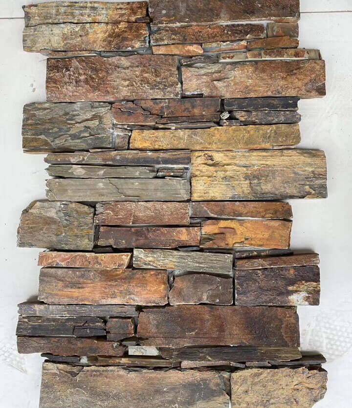 Rusty Slate Z Stone Cladding weighs approximately 80 kilograms per square meter. This is substantially lighter than full-thickness stone (typically 200-300kg/sqm) but heavier than thin veneers or drywall alternatives. Most standard commercial wall framing supports this load without reinforcement. Consult your structural engineer or building code official if you have specific load-bearing questions for your project.