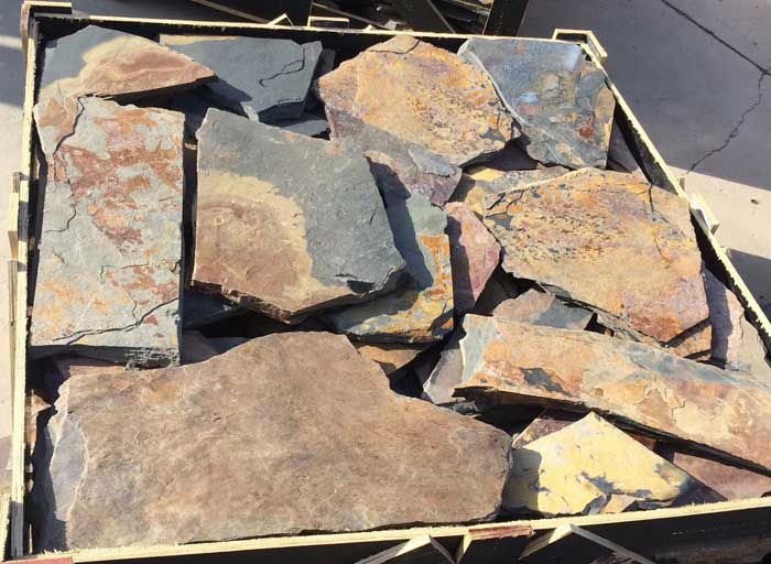 Irregular random shape loose stone consists of individual natural stone pieces cut in varied sizes and shapes. The stones feature natural split face surfaces that create rustic texture. Each piece is unique, allowing for custom pattern creation during installation. The “loose” format means stones are sold individually rather than pre-assembled on panels.