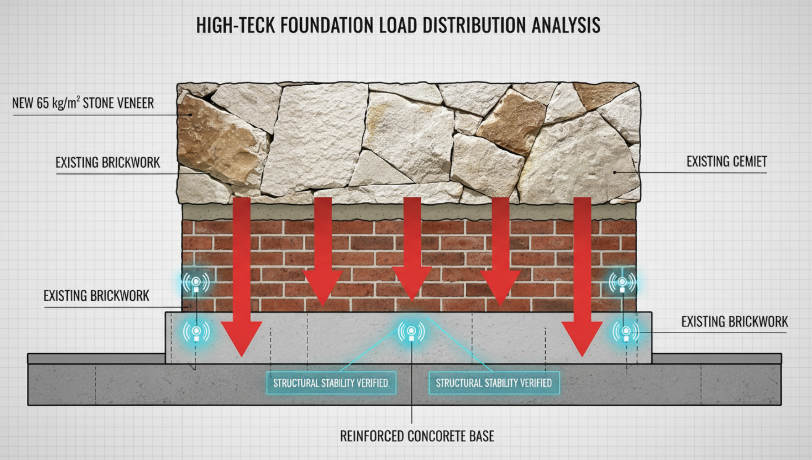 Adding stone veneer to an existing brick substrate requires a precise audit of load-bearing margins to ensure the underlying foundation sustains the additional weight without structural compromise.